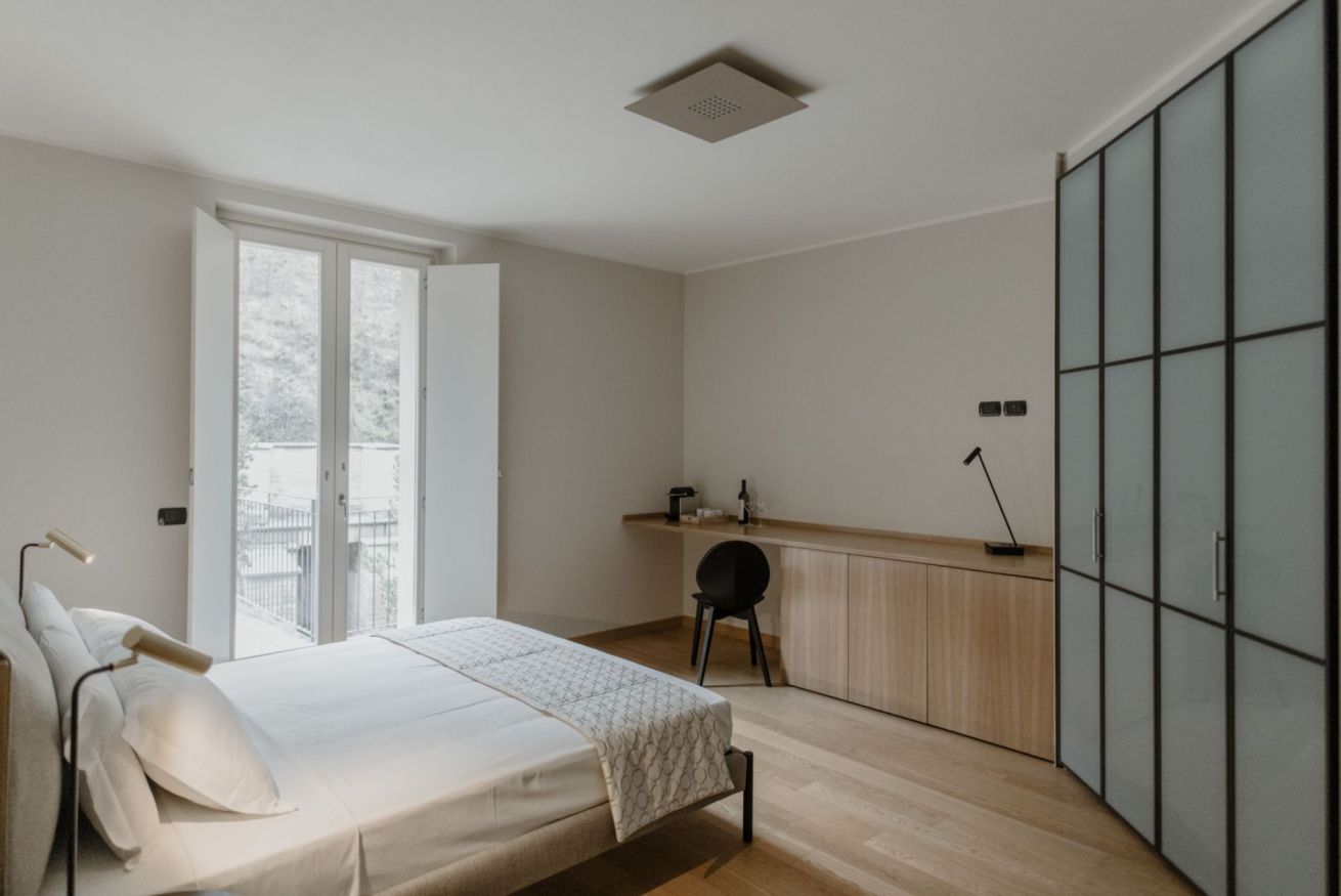 La camera ACERO è al primo piano della struttura principale. Allo stesso piano si trovano la sala colazioni e l'accesso alla piscina.