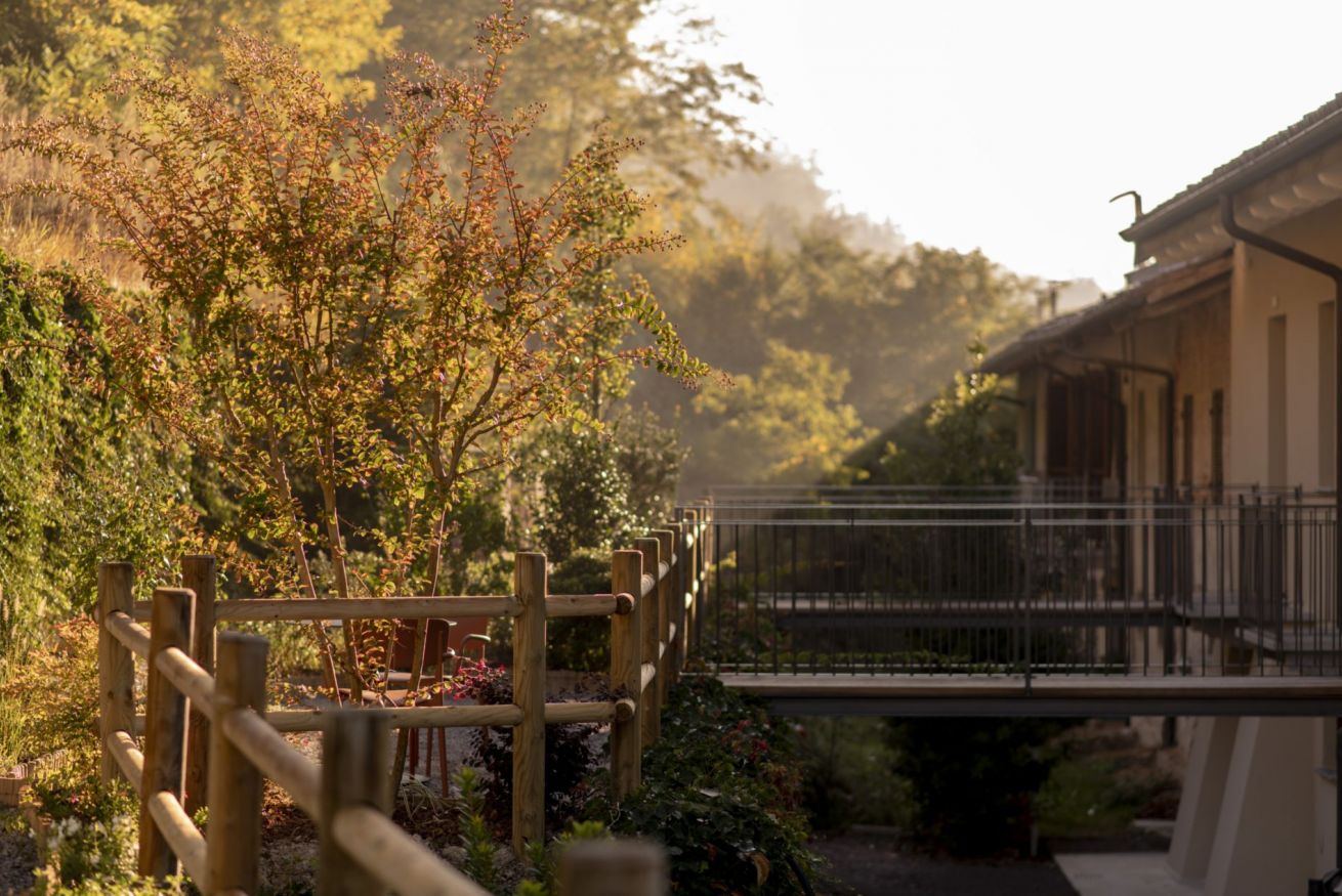 La camera GINKGO è al primo piano della struttura principale. Allo stesso piano si trovano la sala colazioni e l'accesso alla piscina.